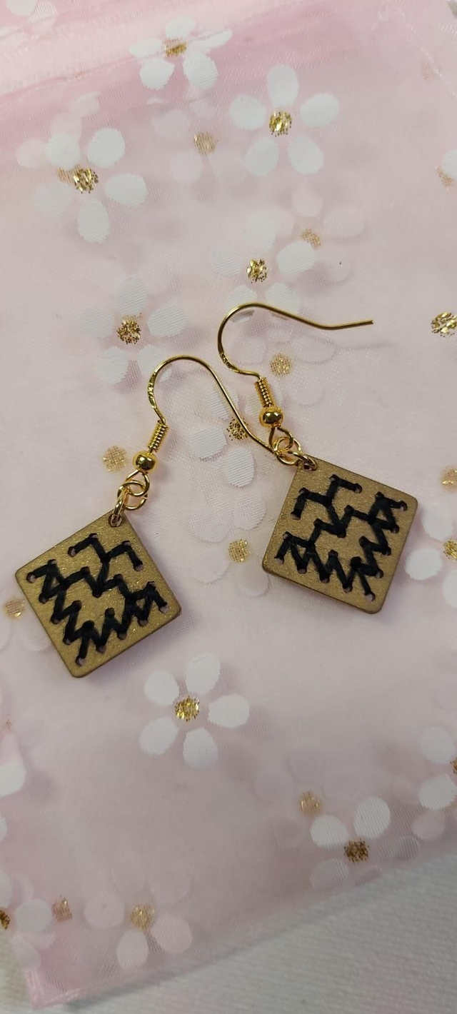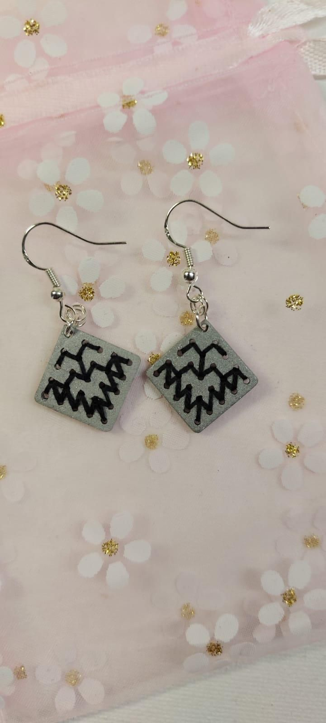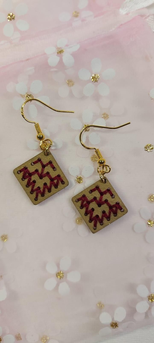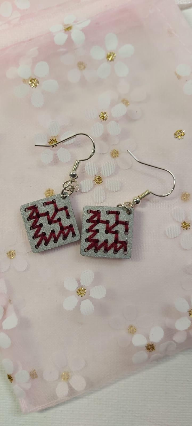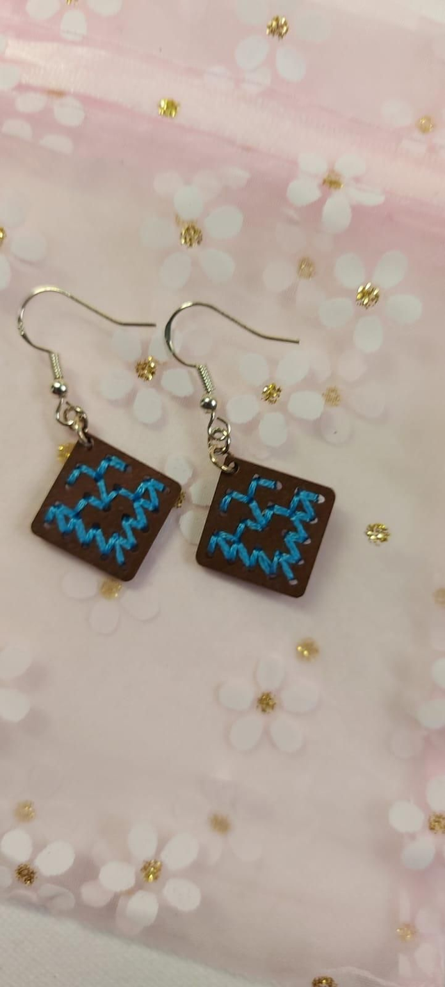 Boucles d'oreilles en bois de tilleul brodés de fil 100% coton,crochets en argent 925.
