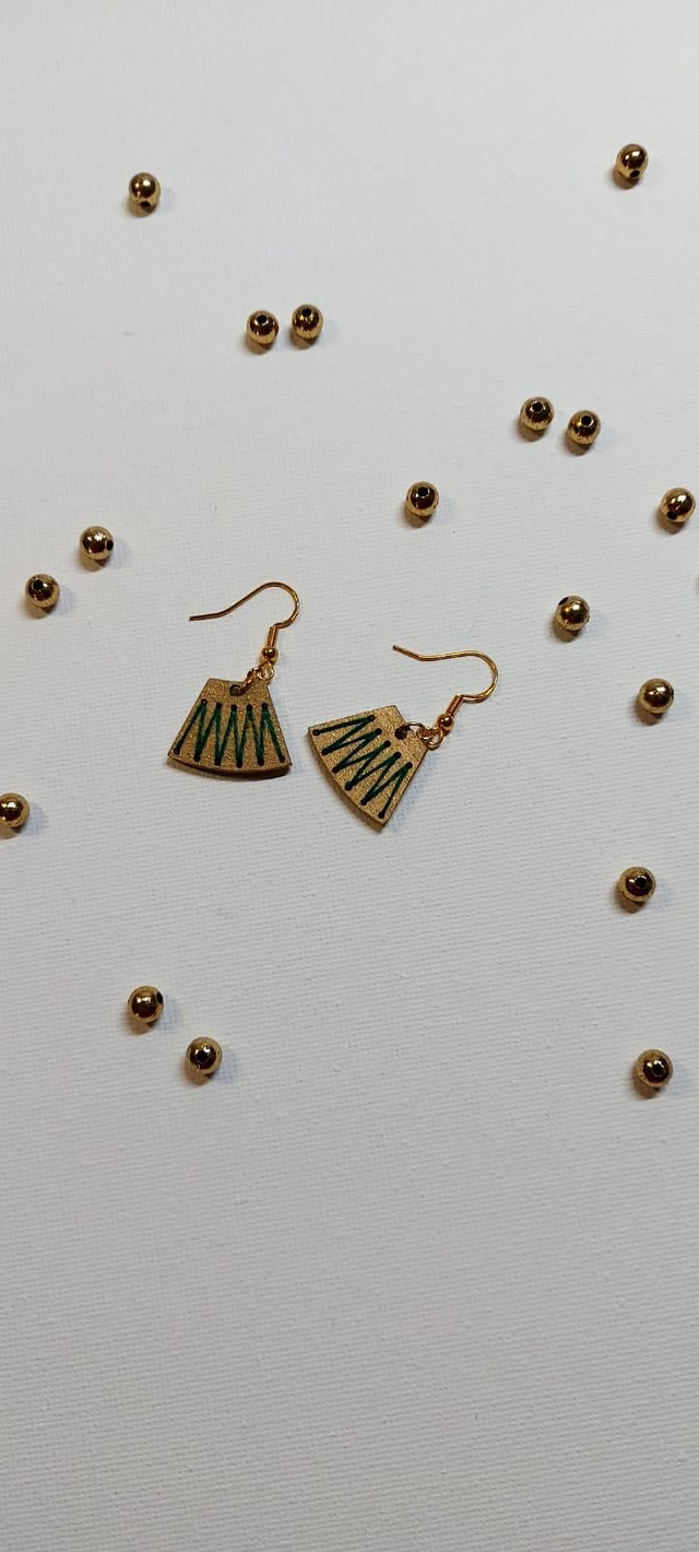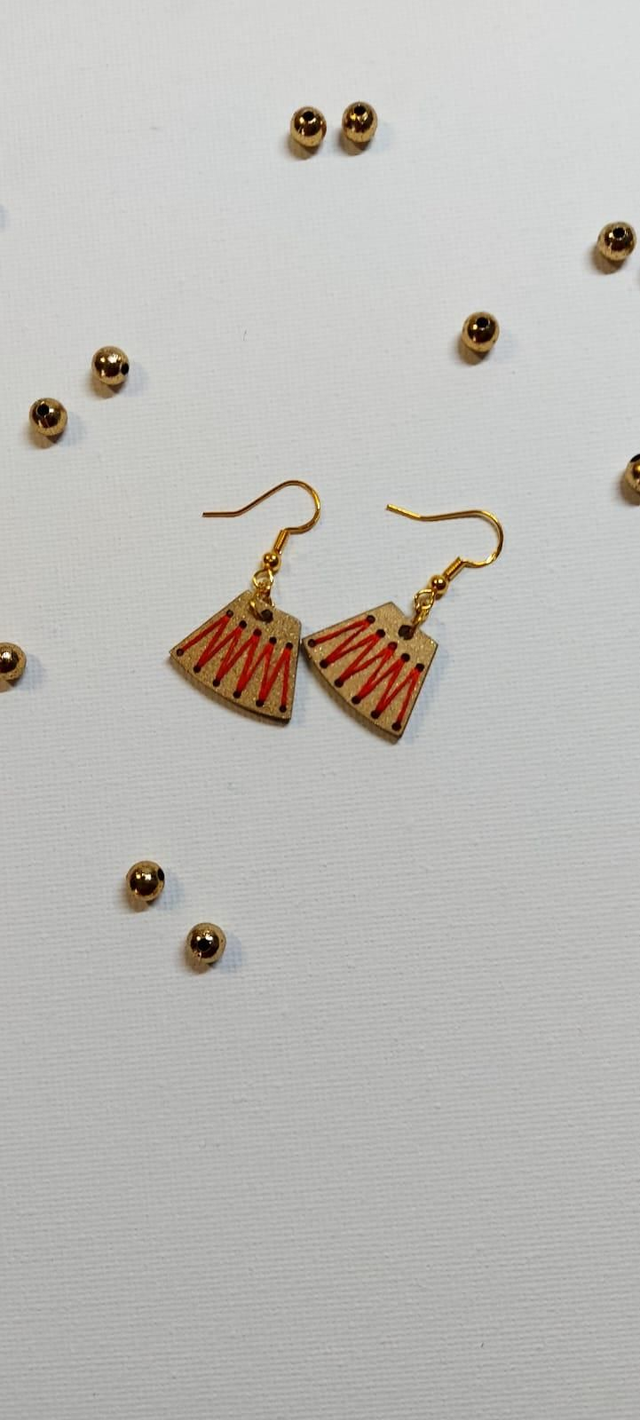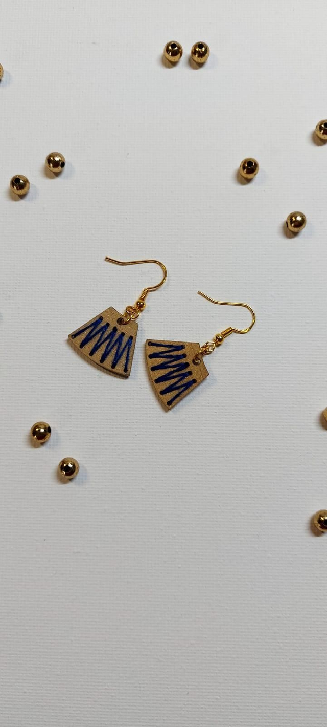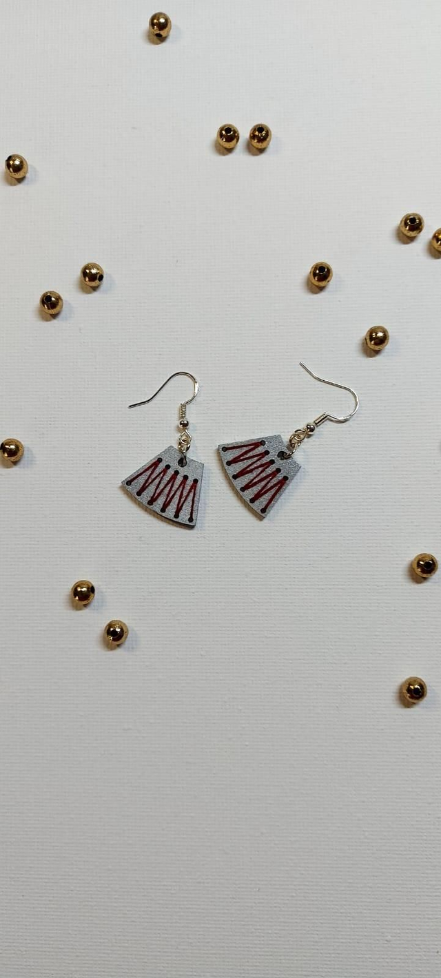 Boucles d'oreilles en bois de tilleul brodés de fil 100% coton, crochets argent 925.