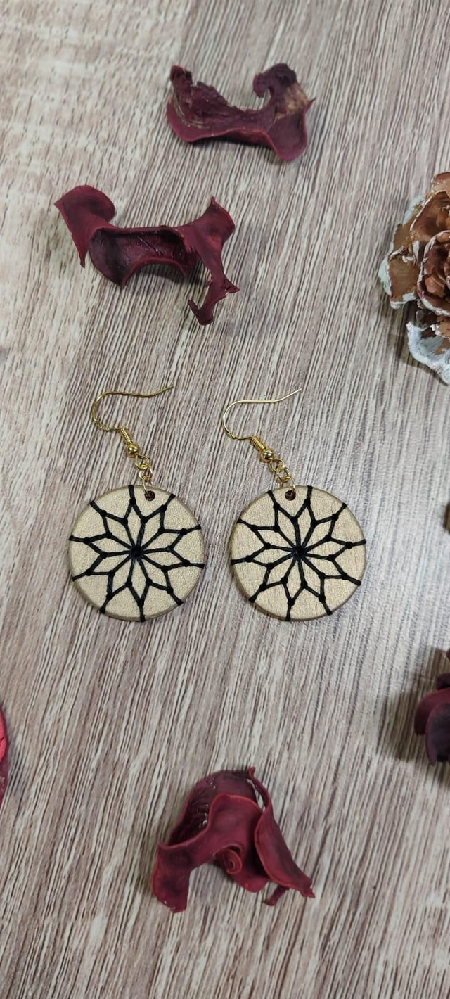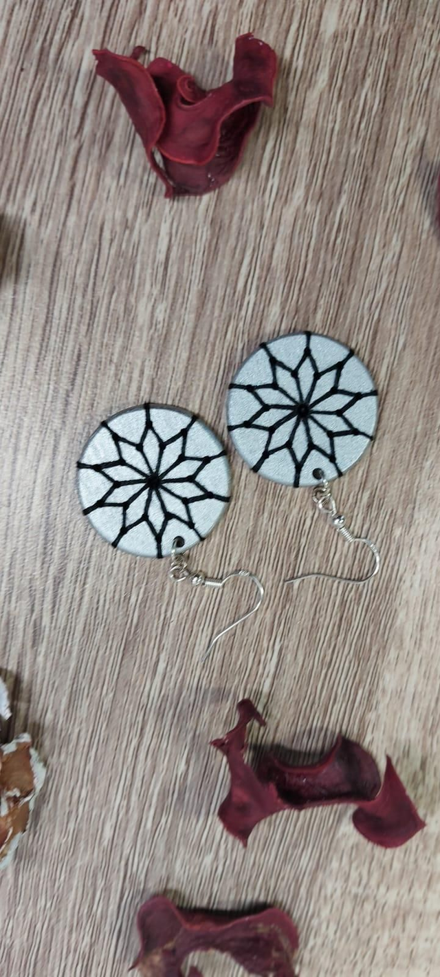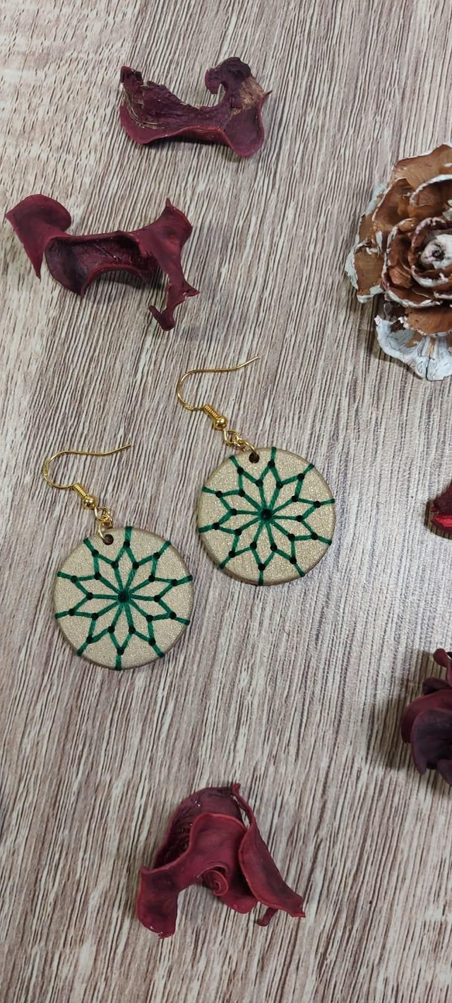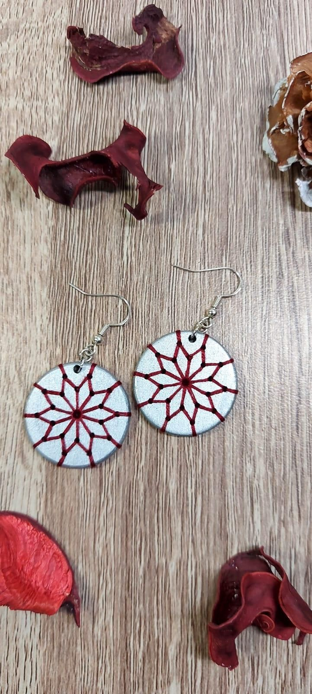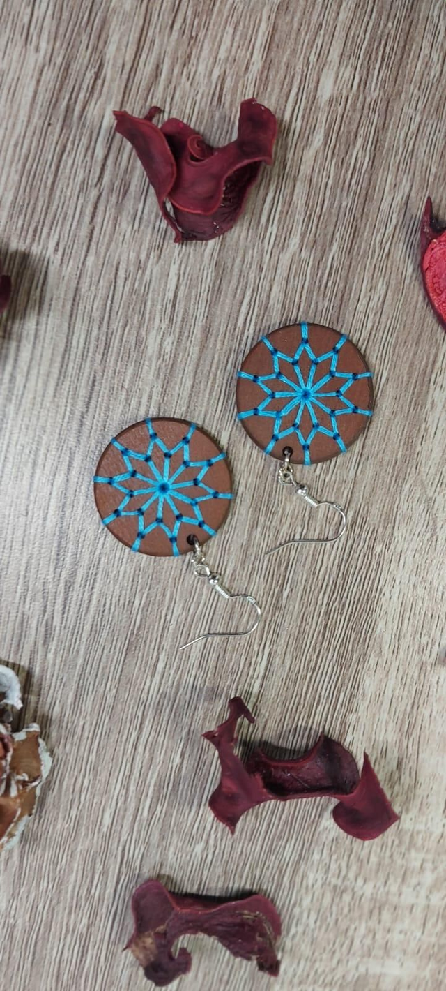 Boucles d'oreilles en bois de tilleul brodés de fil 100% coton, crochets argent 925.